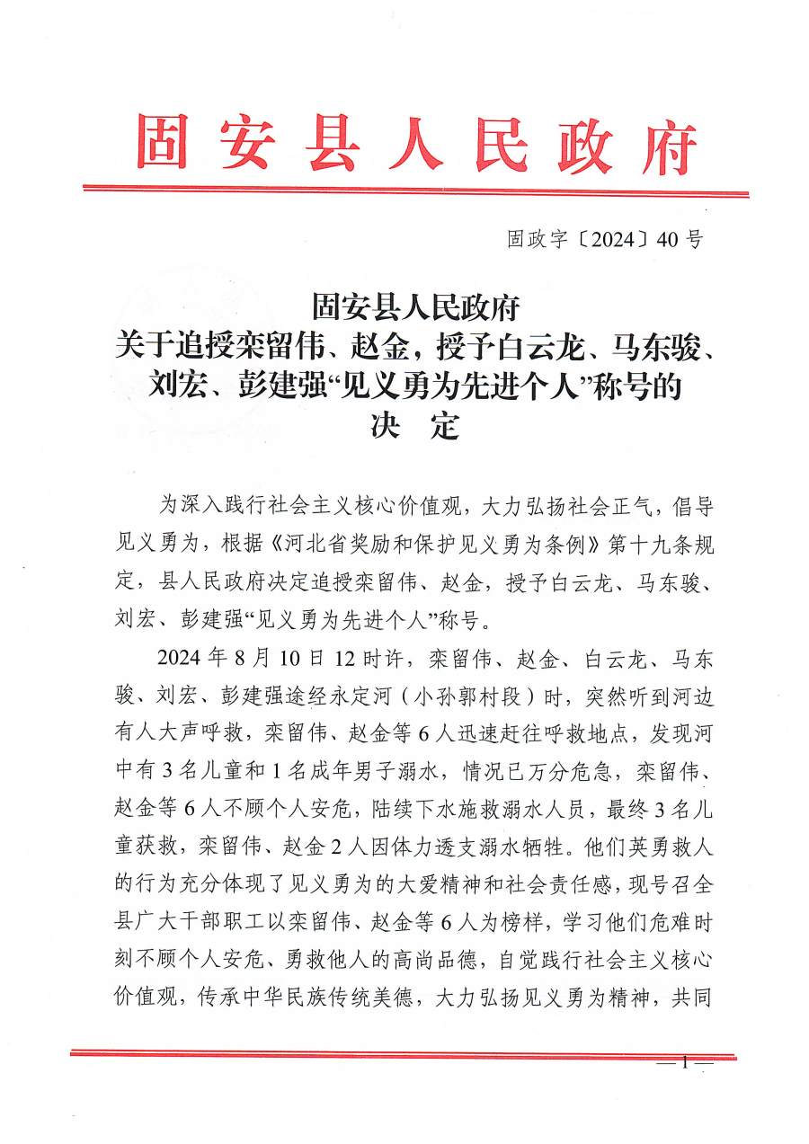 勇救3名落水儿童,栾留伟、赵金等6人被评见义勇为先进个人