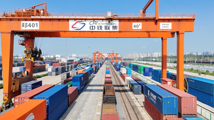 郑州“无水港”建设也取得新突破。在常态化运行郑州至青岛港、连云港、宁波港铁海联运班列的基础上,新开郑州至温州乐清湾铁海联运线路。2023年业务量突破4万标箱、增长151%。