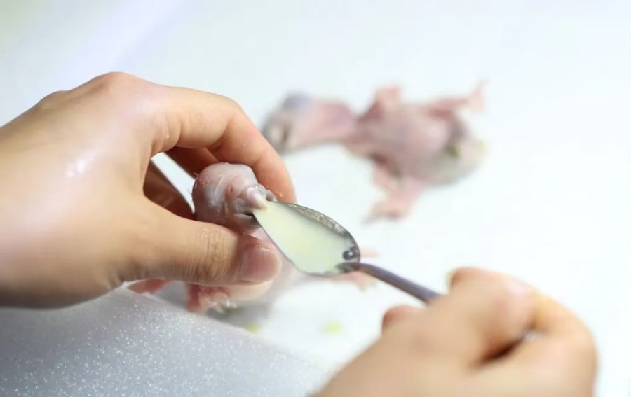 最初,小小的它每次只能享用五毫升的专属奶餐,饲养员们要定好闹钟,确保每两小时喂一次,如此坚持了60多个日夜。随着团子牙齿露头和消化能力提升,饲养员在奶粉里加上肉末,让它的食物慢慢地由奶过渡为肉,并增加了磨碎的维生素、钙片。