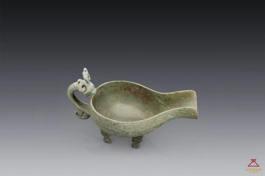 据河南博物院工作人员介绍,铜匜(yí),是中国古代贵族举行礼仪活动时使用的水器,出现于西周中后期,盛行于春秋时期。早期匜为青铜制,汉代以后出现有金银制、漆制、玉制等。