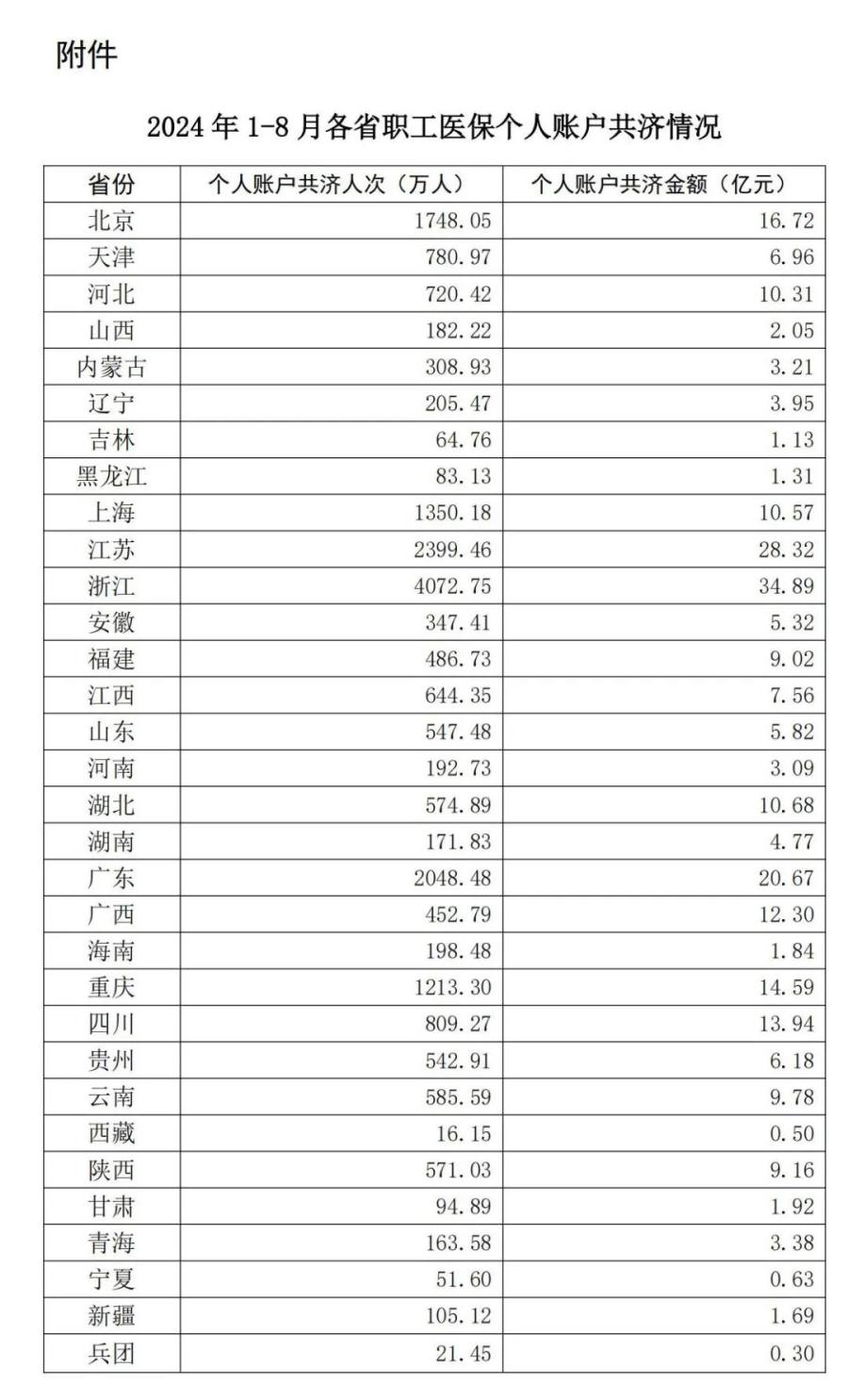 附件:2024年1-8月各省职工医保个人账户共济情况