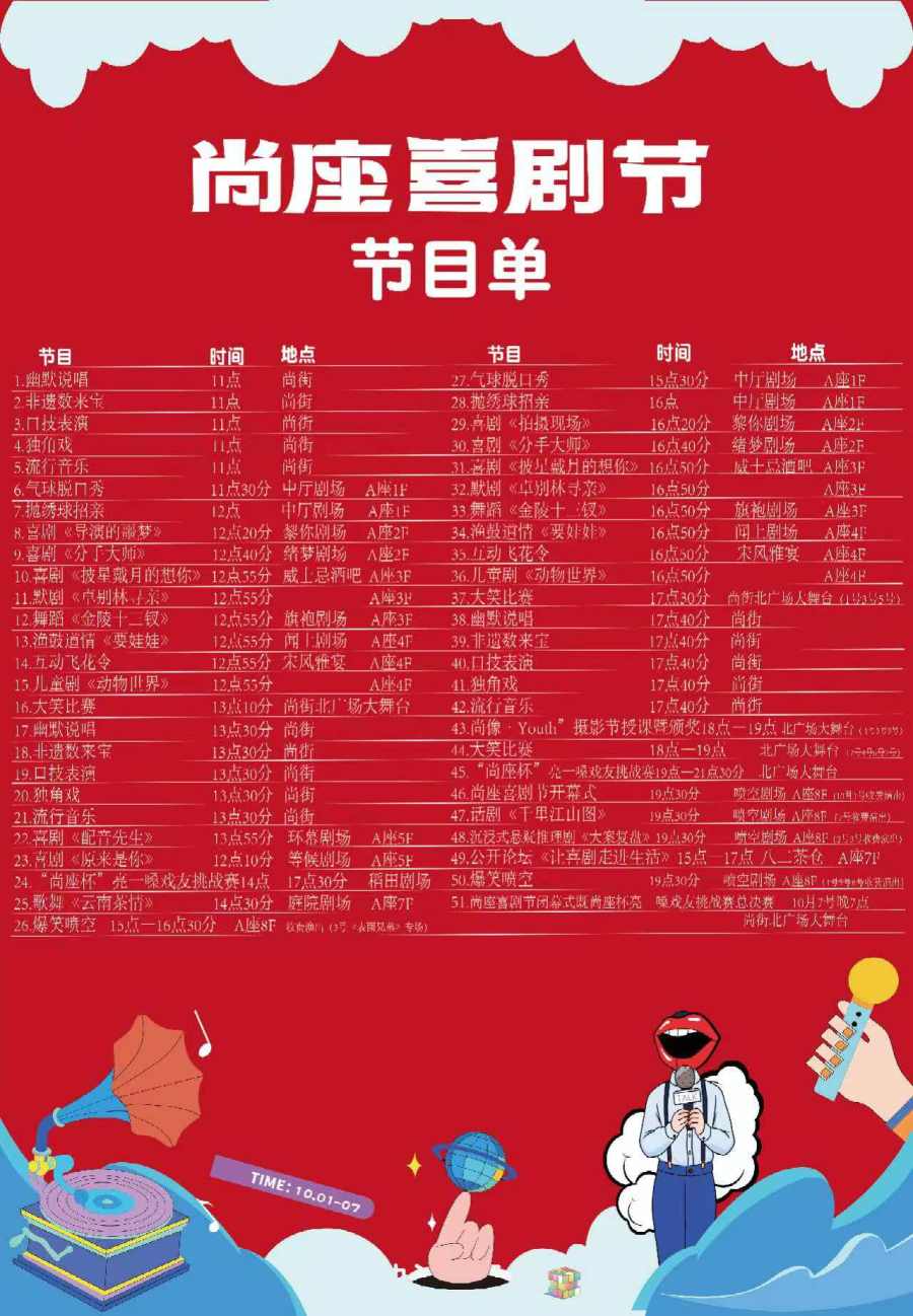 每天40场免费演出+3个低门槛赛事,尚座喜剧节将热闹非凡,笑果满满,期待大家领取属于自己的快乐。