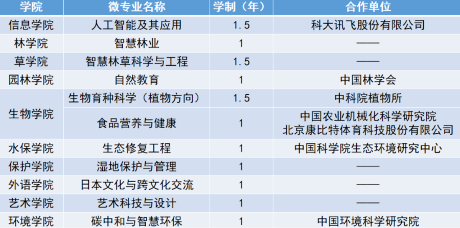 据报道,日前,北京林业大学开设的自然教育、人工智能、碳中和与智慧环保3个微专业迎来首批新生,上班族成为课堂主力。北林自然教育微专业一个班54人,35名来自校外。而且,据介绍,北林本学期开设的微专业课容量均在50人左右,受到了校内外学生的欢迎,报名截止前名额均被一抢而空。