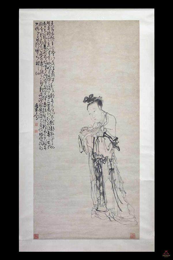 黄慎《美人图》,清朝书画家黄慎真迹,纵长132厘米,横长64厘米,现藏河南博物院。