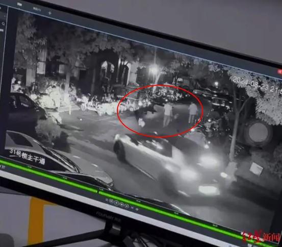 据红星新闻报道,8月23日,江苏省徐州市,王先生开车经过小区内一个90度弯道时,有一对男女带着两只未拴绳的柯基犬行走,王先生看到其中一只挡在路中间,遂及时停车。