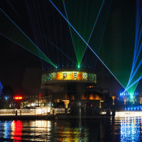 水面的数座桥身,也被赋予了新的生命。饕餮纹饰的庄重、玄鸟图腾的神秘以及浩瀚星空的浪漫,于光影变换中活灵活现。如同流动的画布,演绎着古老传说与现代科技的完美对话。