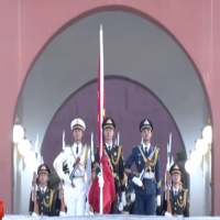 今天,中华人民共和国成立75周年,天安门广场举行国庆升国旗仪式。迎着清晨的第一缕阳光,在雄壮的国歌声中看五星红旗冉冉升起!祝福祖国繁荣昌盛!