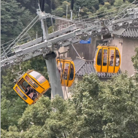 10月1日,有网友在社交媒体上发文称,雁荡山景区内一辆缆车发生故障,导致一名游客意外坠落,并配有图片。图片显示,一辆印有“雁荡山悬崖索道欢迎”的黄色缆车在空中倾斜。