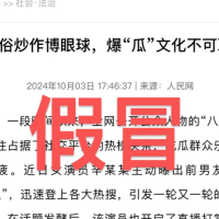10月3日,一篇题为《低俗炒作博眼球,爆“瓜”文化不可取》的文章,打着“人民网”旗号在网上被恶炒,引发部分网友误解。然而真相却是,人民网并没有发过这篇文章,此乃彻头彻尾的“套牌”戏法。所谓“society.people.com.cn.lblhky.com”的链接,根本不是人民网社会法治频道的网络地址。