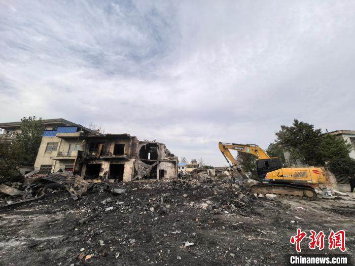 图为淮南市潘集区架河镇王圩村一自建房火灾事故现场。 张强 摄
