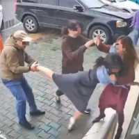 事情是这样的:张女士家的店门口一大早停了辆黑车,待到快中午时,张女士母亲开车办事回来,见到黑车车主,让他挪车,双方发生言语冲突。黑车一方的女子突然掌掴张母,男子也随即动手。张女士和张母被拉扯踹打,邻居上前制止,将双方拉开。事后张女士选择了报警。