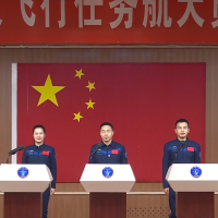 今天(29日)上午,3名航天员蔡旭哲、宋令东、王浩泽在酒泉卫星发射中心问天阁与中外媒体记者集体见面。