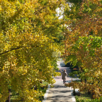 郑州大学新校区。郑大新区的银杏树很多,最有名的要数南门五角星广场的4排银杏树了,吸引摄影爱好者的除了黄叶之美,还有对称之美。除了银杏树,校园内的月湖、瀑布都值得一看。
