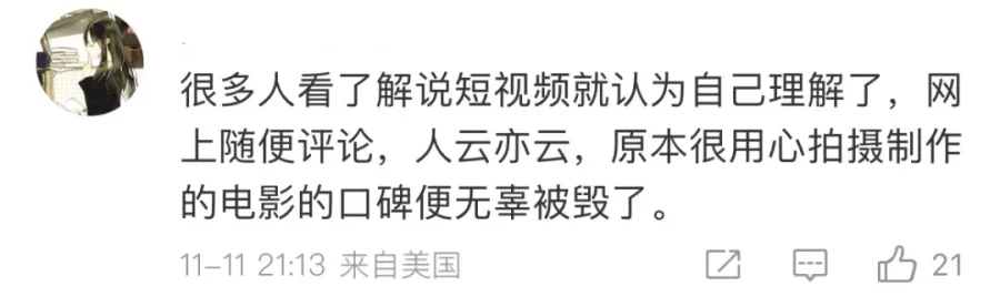 11月12日,“张艺谋说对电影解说短视频很无语”冲上热搜。
