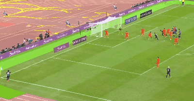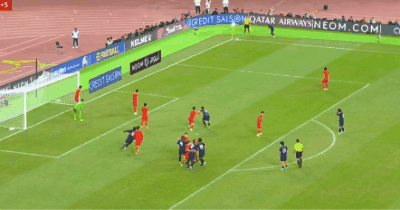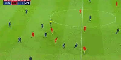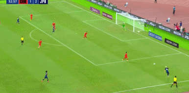 上半场结束前最后一次进攻,日本队再次利用角球机会破门,板仓滉后点无人盯防头球接力破门。