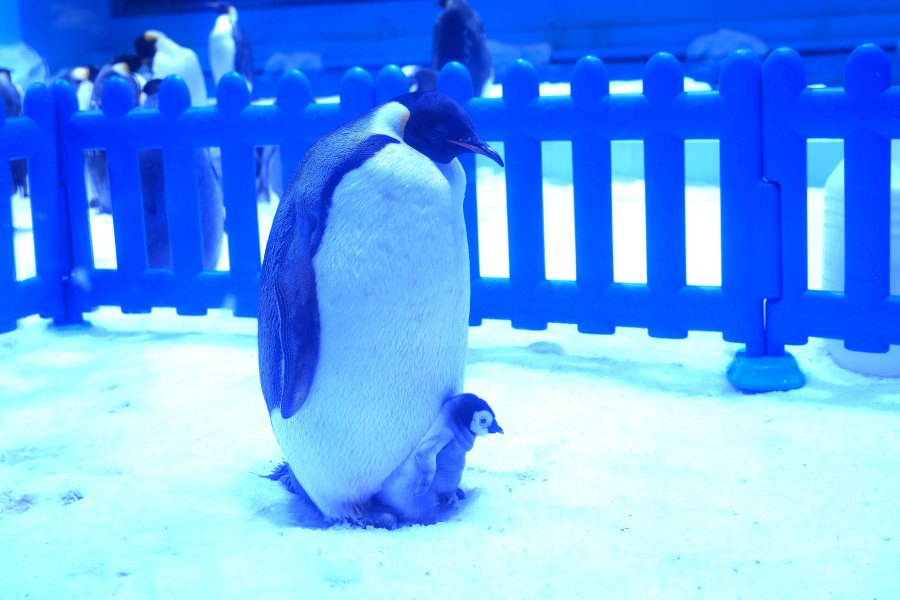 郑州海昌海洋公园帝企鹅爸爸带着企鹅宝宝—郑州海昌海洋公园供图