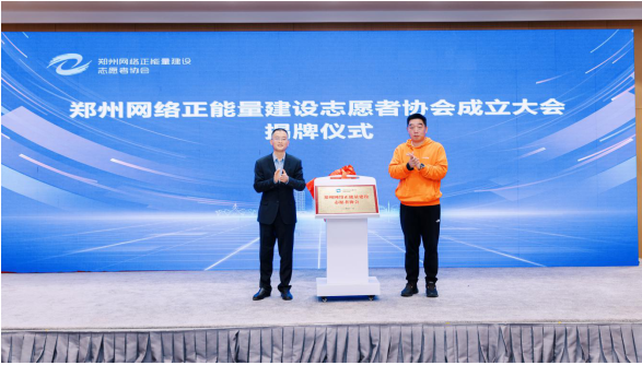 市委网信办主任张永、郑州网络正能量建设志愿者协会第一届会长乔松涛共同揭牌