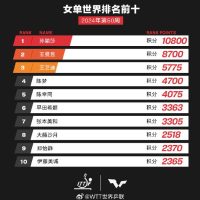 女单方面,孙颖莎持续霸榜第一,王曼昱、王艺迪位列第二、第三。