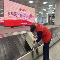 为行李提供多一份“呵护”。为进一步提升行李服务品质,郑州机场在行李装卸、分拣等岗位设立“呵护”站,遇到雨雪天气时,温情推出行李擦拭服务,确保行李的干净整洁。对于轻微划痕损伤行李,在行李提取大厅,提供免费维修服务,让旅客感受到贴心入微的服务。在行李搬运摆放时,严格按照“行李轮子不触转盘、侧立码放、把手朝上”的标准,遵守“腰弯一点、拿稳一点、放轻一点”的服务准则,为旅客行李提供多一份“呵护”。