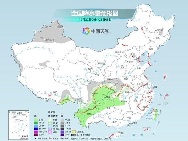 全国大部雨雪稀少 22日起长江中下游等地有弱降水