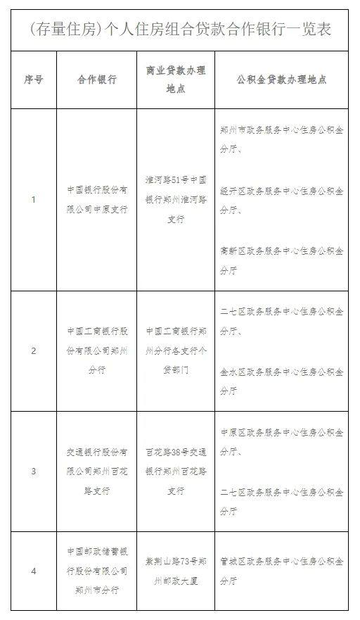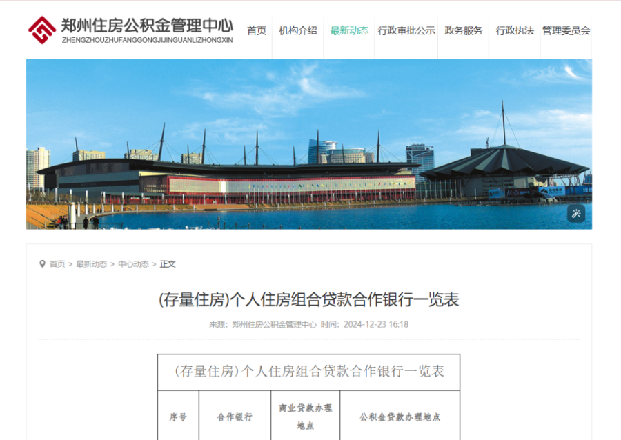 12月23日,郑州市住房公积金管理中心发布个人住房组合贷款合作银行一览表。