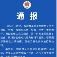 重庆动物园通报:1月5日16时许,游客曹某向正在吃竹子的大熊猫“兰香”投掷可乐瓶,导致“兰香”受到惊吓。我园安保人员发现后,第一时间上前进行了制止,现场游客也对其行为进行了谴责。曹某因涉嫌扰乱公共秩序,已被公安机关依法行政处罚。
