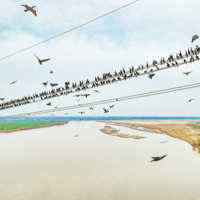 中牟县狼城岗,天高水阔,蓝天白云,黄河之上万鸟齐飞,鸬鹚、豆雁、灰鹤、绿头鸭、赤麻鸭……各种鸟儿聚集,或浮游河面,或觅食水中,或高飞天空,或起舞沙洲,一派生机勃勃。这是黄河之美。