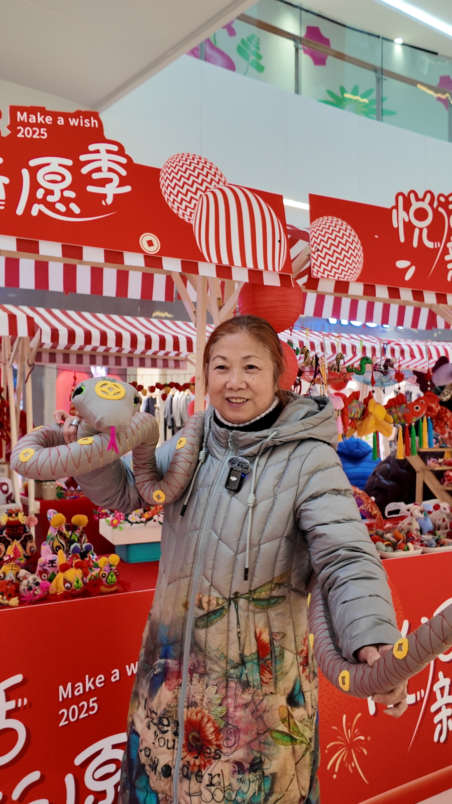 香草为佩,寓意美好。今年是蛇年,芦爱玲特别制作了一系列以蛇为主题的香包。其中最大的一个蛇形香包,头顶古钱、颈有白菜,身上也布满了铜钱的图案。