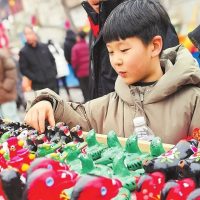2月1日,在浚县古城集市上,泥咕咕琳琅满目,十分讨人喜欢。