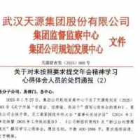 近日,一份上市公司的处罚文件截图在网上流传。截图显示,381位员工因撰写董事长讲话心得超出或不足规定字数被罚款。该份文件的落款为武汉天源集团股份有限公司集团监督监察中心、集团公司规划发展中心,落款日期为2025年2月8日。