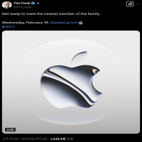 当地时间2月13日,苹果CEO蒂姆·库克(Tim Cook)在X(原推特)平台上发文表示新产品将在2月19日发布。在库克发布的短视频里出现了有金属光泽的苹果图标,他在配文中写道:“准备好迎接家庭的新成员吧。”