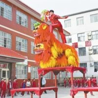 马步稳如泰山、弓步疾如闪电……2月19日,记者在鹅坡武校看到,伴着铿锵鼓乐,两只身披金黄毛发的“狮子”时而挪步、时而腾跃,在引“狮”少年的带动下迅捷窜上1.6米高台娴熟倒立、空翻,引“狮”少年同时做出踺子后手翻接后空翻动作。双方配合默契,将北狮的威武灵动、刚柔并济展现得淋漓尽致。