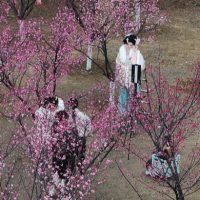 西流湖公园1600余株梅花竞放,图为游客在梅林中拍摄写真 本报记者 马健 摄