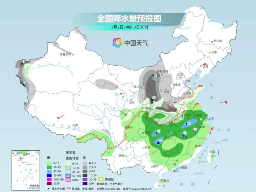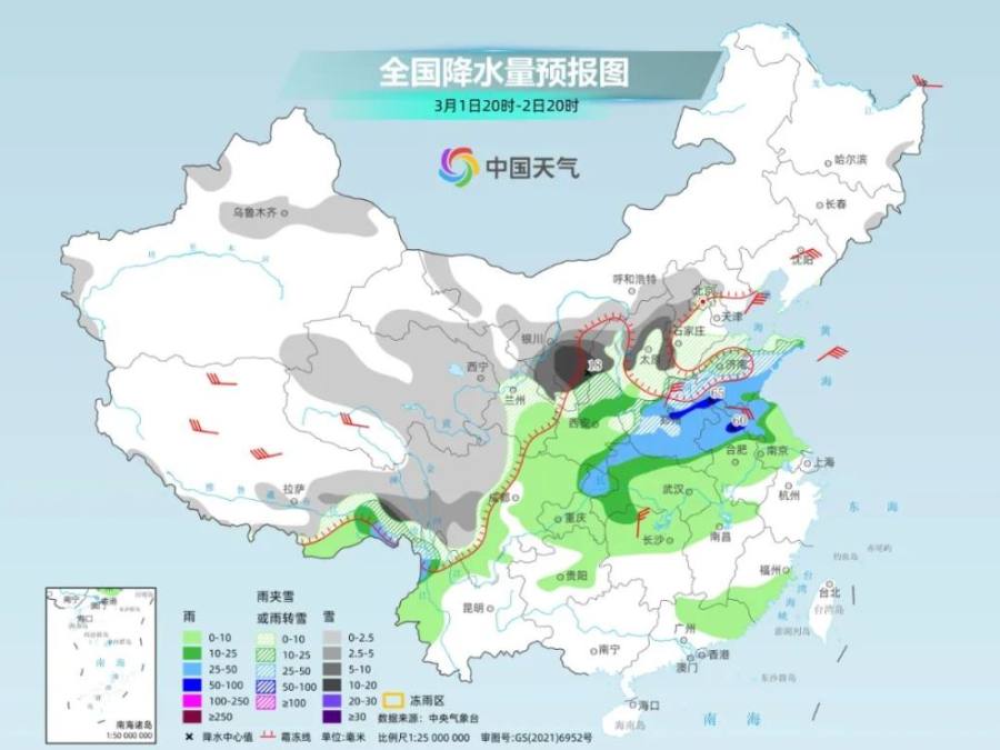 中央气象台预计,1日夜间至3日,西北地区东部、华北西部和南部、黄淮、江汉等地有小到中雨转雪,部分地区有中到大雪,内蒙古河套地区、陕西北部、河南中东部、山东等地局部地区有暴雪;黄淮、江汉、江淮、江南西部和北部、华南北部等地部分地区有大雨,局地暴雨。江汉南部、江淮南部、江南中北部等局地有雷暴大风或冰雹等强对流天气。