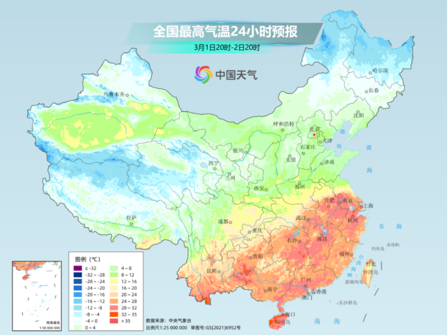 2日,在寒潮尚未到达前,南方气温仍将大面积创新高,长江中下游多地暖热程度同期少见,具有一定极端性。