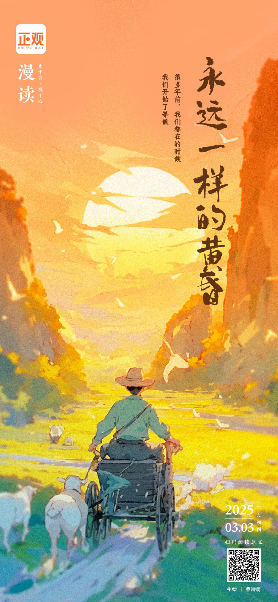 每天这个时辰,当最后一缕夕阳照到门框上我就回来,赶着牛车回来,吆着羊群回来,背着柴火回来。父亲母亲、弟弟妹妹都在院子,黄狗、芦花鸡还没回窝休息。