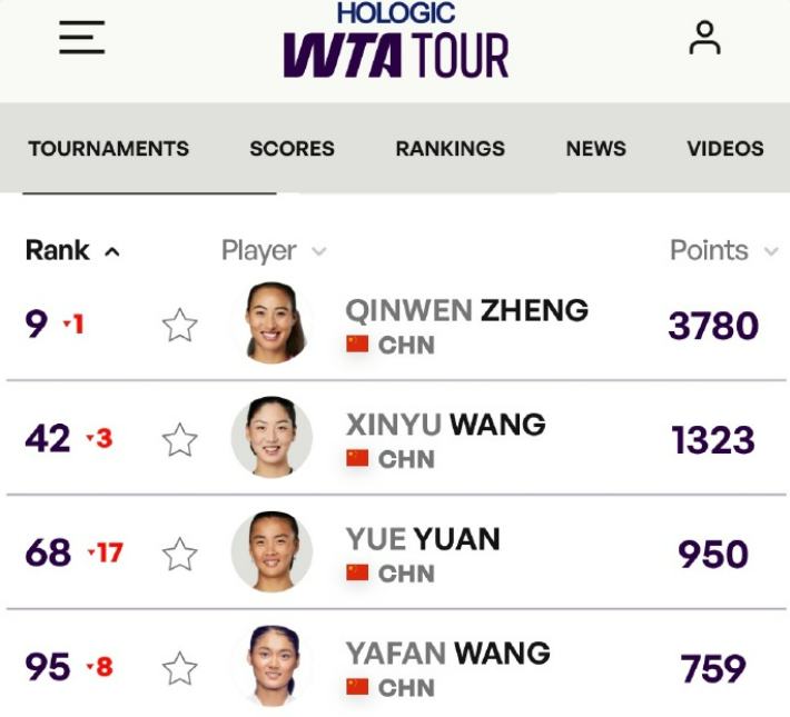 郑钦文以世界第5的排名开启2025赛季,澳网结束后下跌3位,如今再跌1位。