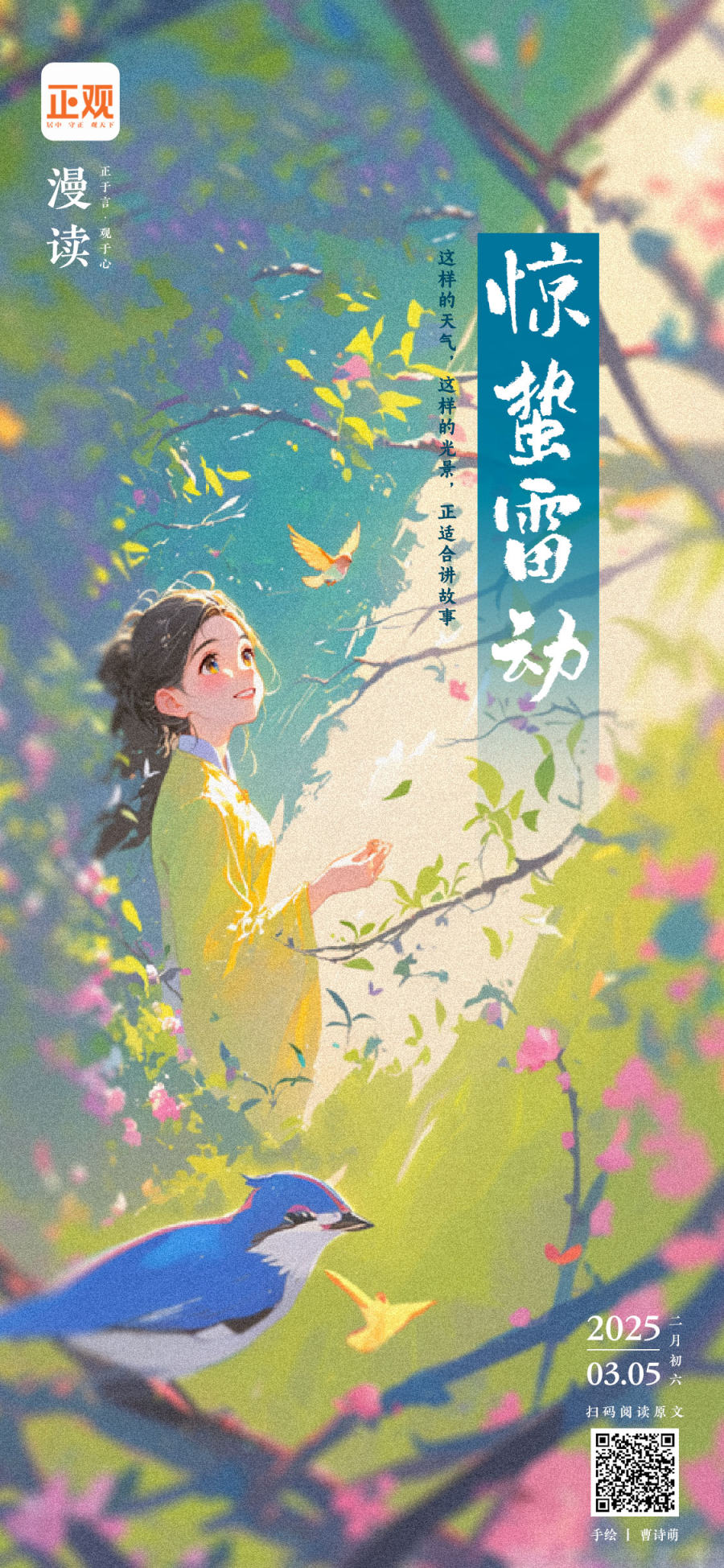 仲春时节,山花烂漫,桃花、杏花、蔷薇渐次亮相人间。这样的天气,这样的光景,正适合讲故事。讲蛙声十里出山泉,讲小蝌蚪找妈妈,讲龟兔赛跑,讲燕子飞去又飞来,讲白鹭和鳜鱼在西塞山前对峙,讲春雷惊蛰万物生长,这不失为一件雅事,更不失为一件乐事。