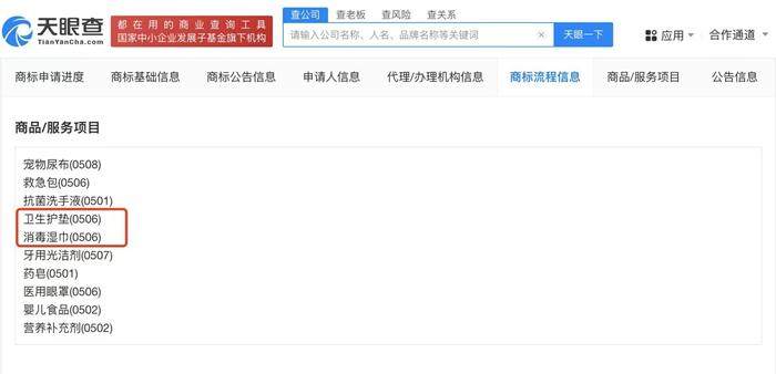 小米注册商标中含卫生护垫,“小米舒七”等被其他人申请注册