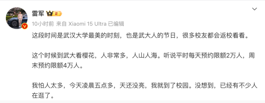 雷军回应“身材管理”!凌晨5点拍樱花,还换了头像