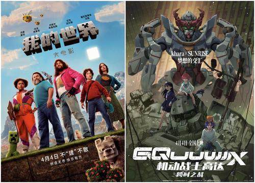 根据全球最畅销电子游戏改编的真人电影《我的世界大电影》,以及全球热门IP高达系列全新力作《机动战士高达:跨时之战》同样将在4月4日与观众见面。