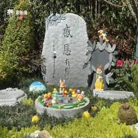 顶部一窝小鸟,鸟爸爸和鸟妈妈保护着几只刚出生的小鸟;七星瓢虫仿佛活了一样在爬行;小兔子、小松鼠在猴面包树上嬉戏;“感恩有你”四个字透露着稚气与青涩……如果不是亲眼所见,很难相信这是一块墓碑。