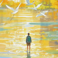 放眼望去,我瞥见远处浅滩上有一道道白色的影子倏忽掠过,恍若《洛神赋》中“翩若惊鸿”的倩影,舒展着修长的脖颈,优雅地单足伫立,时不时还来回走动,细腿经过之处,把水面划过一道漾开的波纹,粼粼的伸向水面的中央。