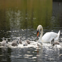 在接下来的几年里,北龙湖的“王子”和“公主”屡创奇迹。2021年、2022年、2023年、2024年、2025年,它们分别孵化出9只、9只、7只、5只、9只小天鹅。2022年以后,“王子”“公主”的第一代孩子们也开始成家,“王子”“公主”荣升爷爷奶奶。2024年,北龙湖同时有11对疣鼻天鹅做窝孵化,今年达到14窝。来到北龙湖,时时可以见到数十只天鹅在水面游弋。而这满湖天鹅,基本都是“王子”“公主”的儿孙。