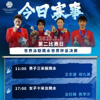 北京时间5月3日,2025世界泳联跳水世界杯总决赛将在国家游泳中心(水立方)进入第二个比赛日,并将诞生2枚单人项目的金牌。男子3米板的王宗源和郑九源将迎接世界名将的挑战;全红婵和陈芋汐则将在女子10米台上演巅峰对决。