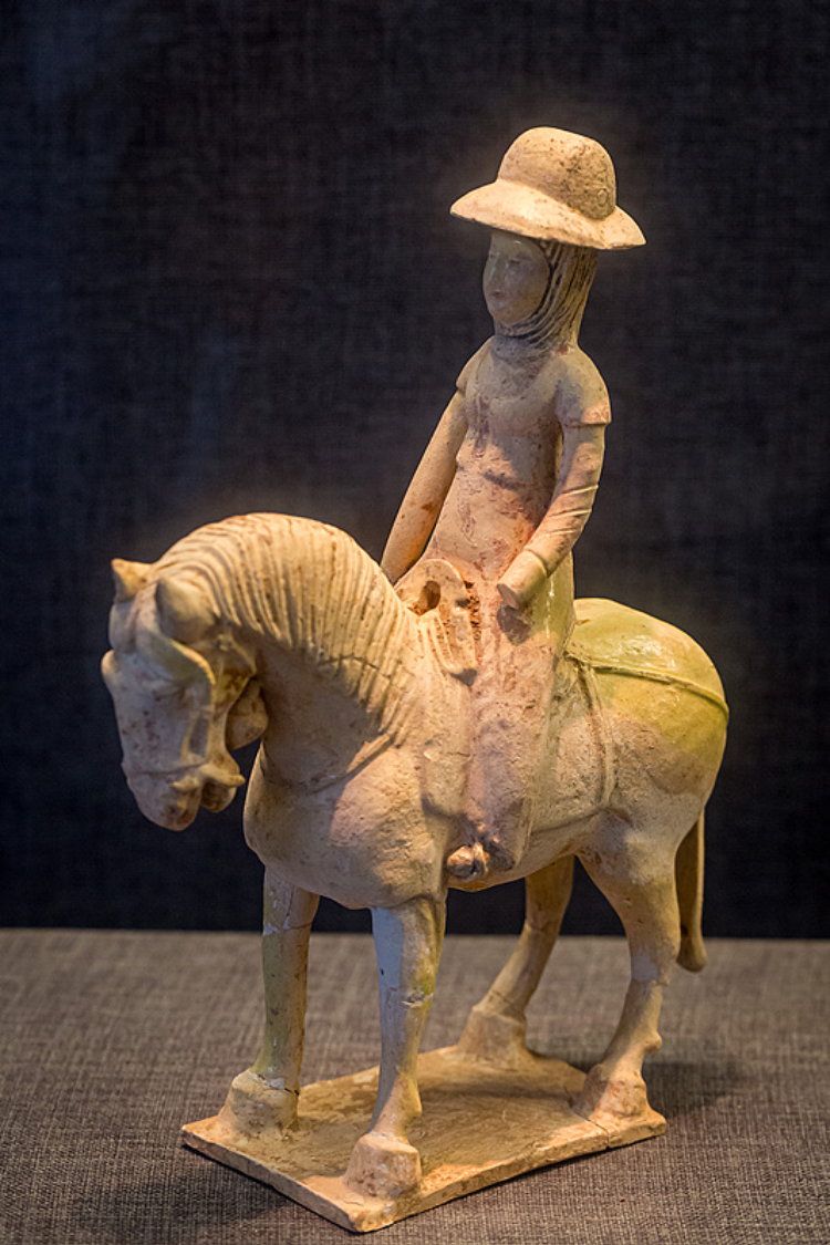 不过,由于帷帽实在太出名,因此别说是现代历史剧,就连古人都犯过这种“穿越”的错。据《旧唐书·舆服志》等历史文献记载,阎立本曾经画过一幅《昭君出塞图》,其中就有头戴帷帽的妇人。汉人戴帷帽,这是妥妥的“穿越”。可惜这幅画已经佚散,我们无法看到它的原貌。