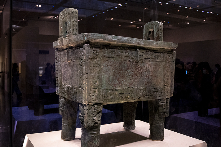 在剧中,秦武王举起的青铜鼎和我们今天在博物馆中看到的十分相似,都是青绿色的,似乎没什么问题。
