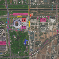设在西四环西侧金马凯旋广场,约可停放小型车1000台,在上述停车场饱和后启用。车辆沿西四环进入和驶出。