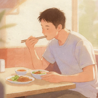 好在只等了一小会儿店主就回来了。他举起手里的塑料袋,笑得眼睛眯成一条缝,说:“不好意思呀,没有生菜了,油麦菜行吗?”当然行!这个季节所有的青菜都绿莹莹、翠生生,像是刚从地里摘的一样,还带着雨珠呢。