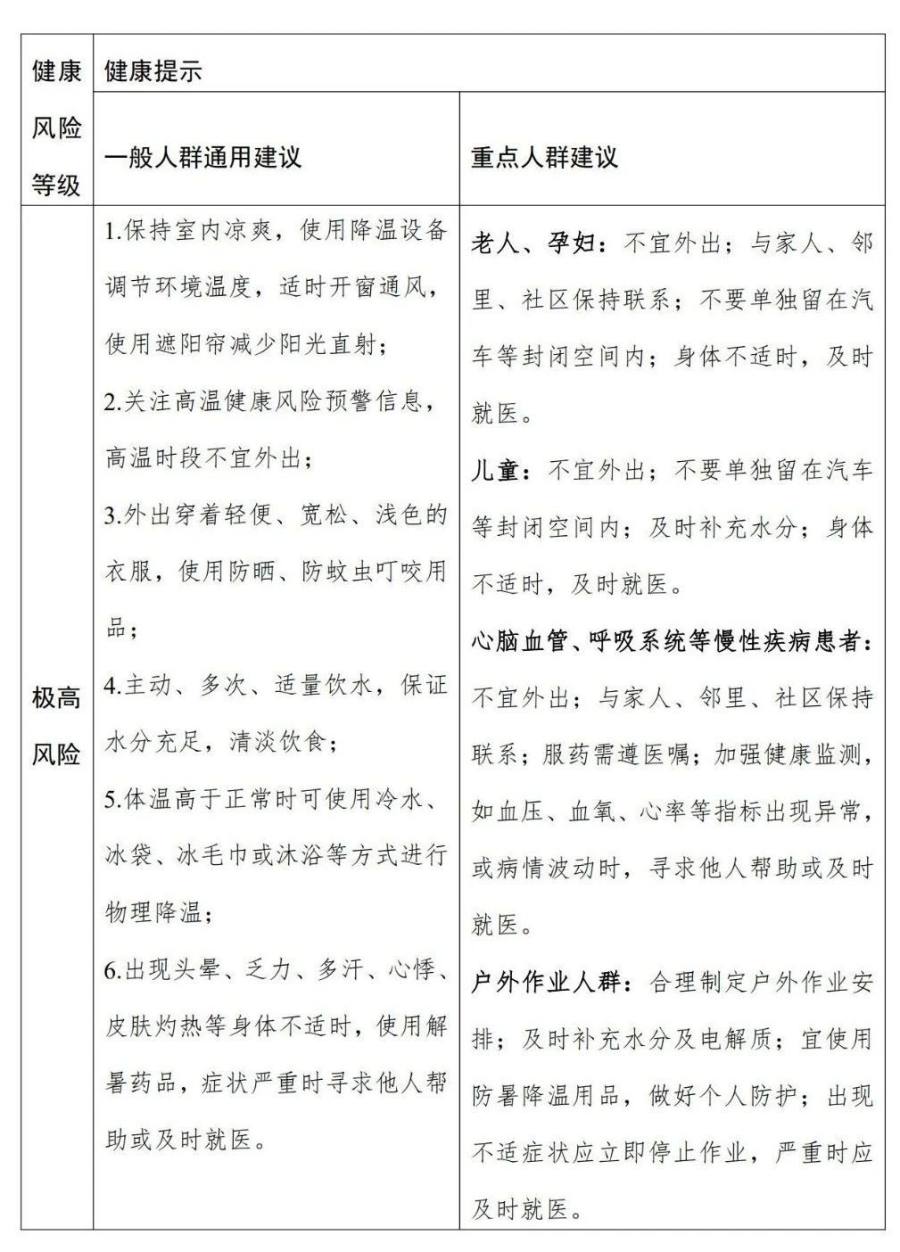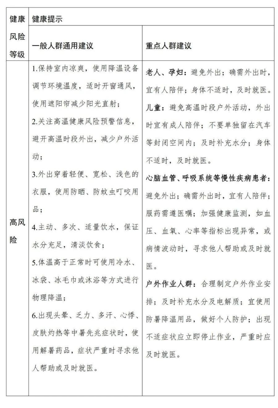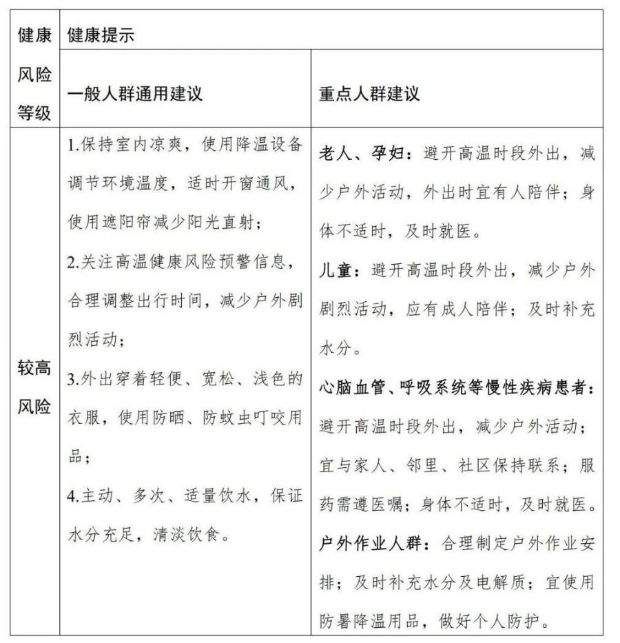 关于高温健康风险分级健康提示